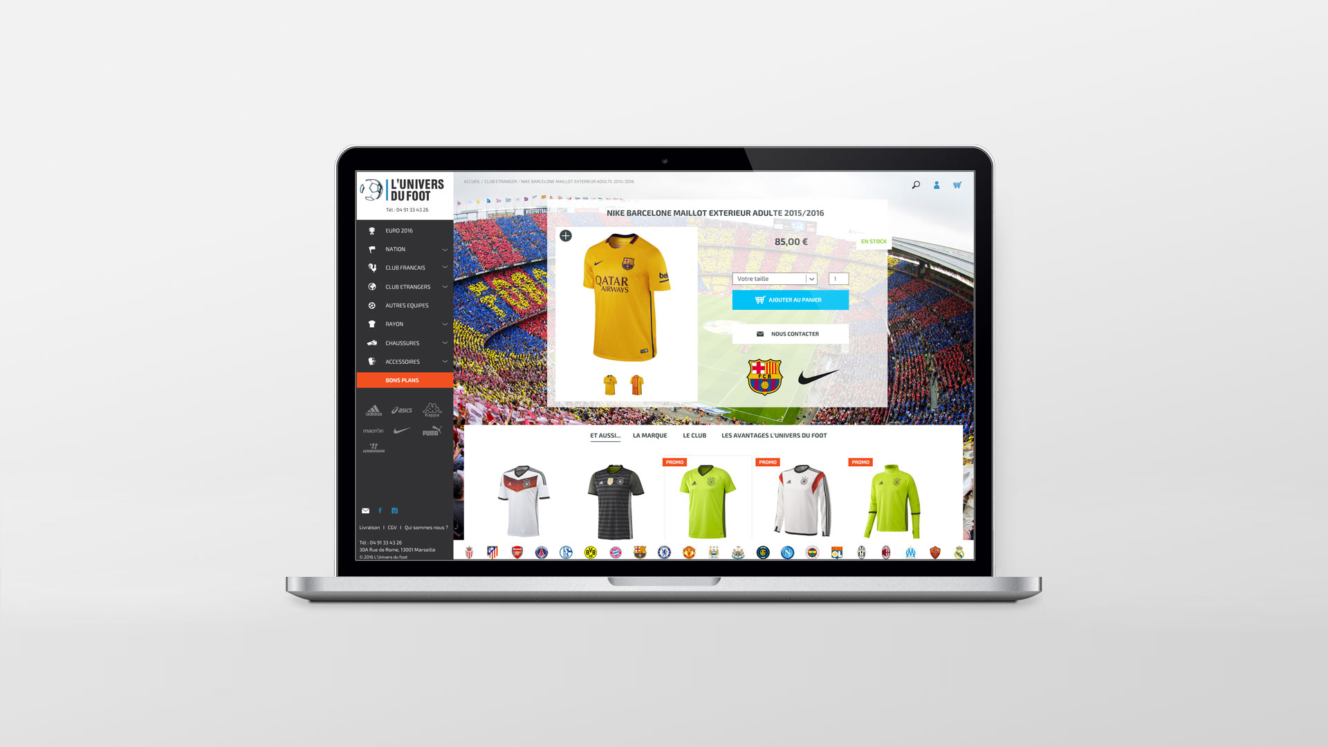 Création de la 2e version de l’eshop Univers du Foot, boutique d’accessoires à Marseille.
